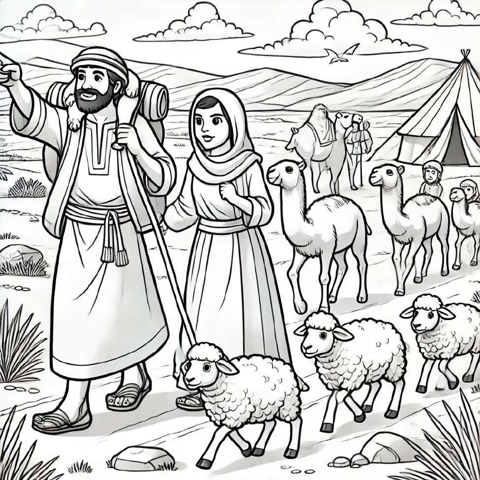 Dieu ordonne à Abram de quitter son pays pour une terre promise, lui promettant une grande descendance et de nombreuses bénédictions. Abram s’installe en Canaan, traverse une famine en Égypte, puis se sépare de son neveu Loth. Dieu renouvelle l’alliance, lui offrant toute la terre visible et une descendance innombrable. Abram a un fils, Ismaël, avec Agar, servante de Saraï, qui ne peut enfanter. Dieu change son nom en Abraham, établit la circoncision comme signe de l’alliance et promet la naissance d’Isaac, fils de Sarah.