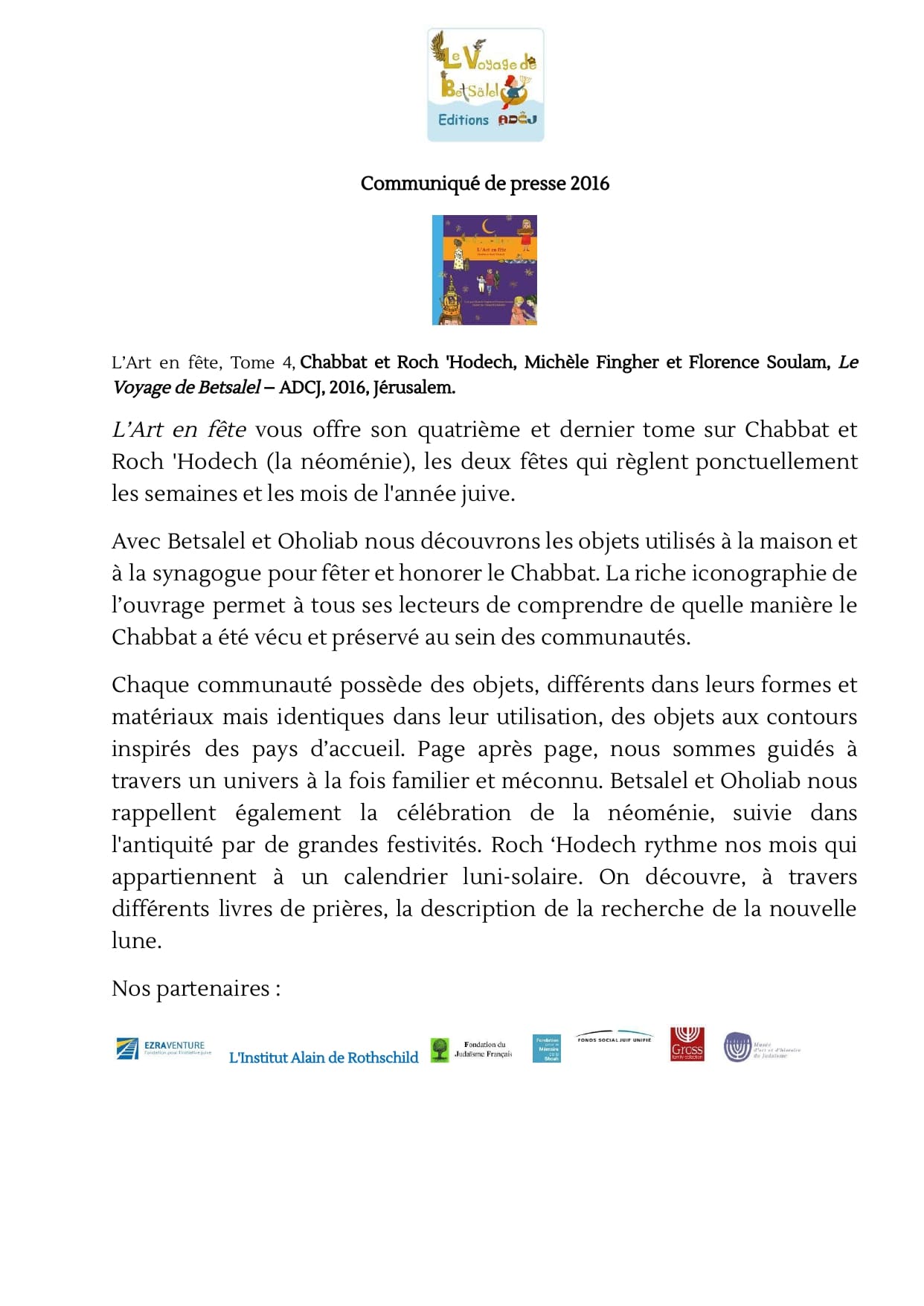 L’Art en fête vous présente son quatrième et dernier tome, dédié à Chabbat et Roch ‘Hodech (la néoménie), deux fêtes qui rythment les semaines et les mois du calendrier juif.