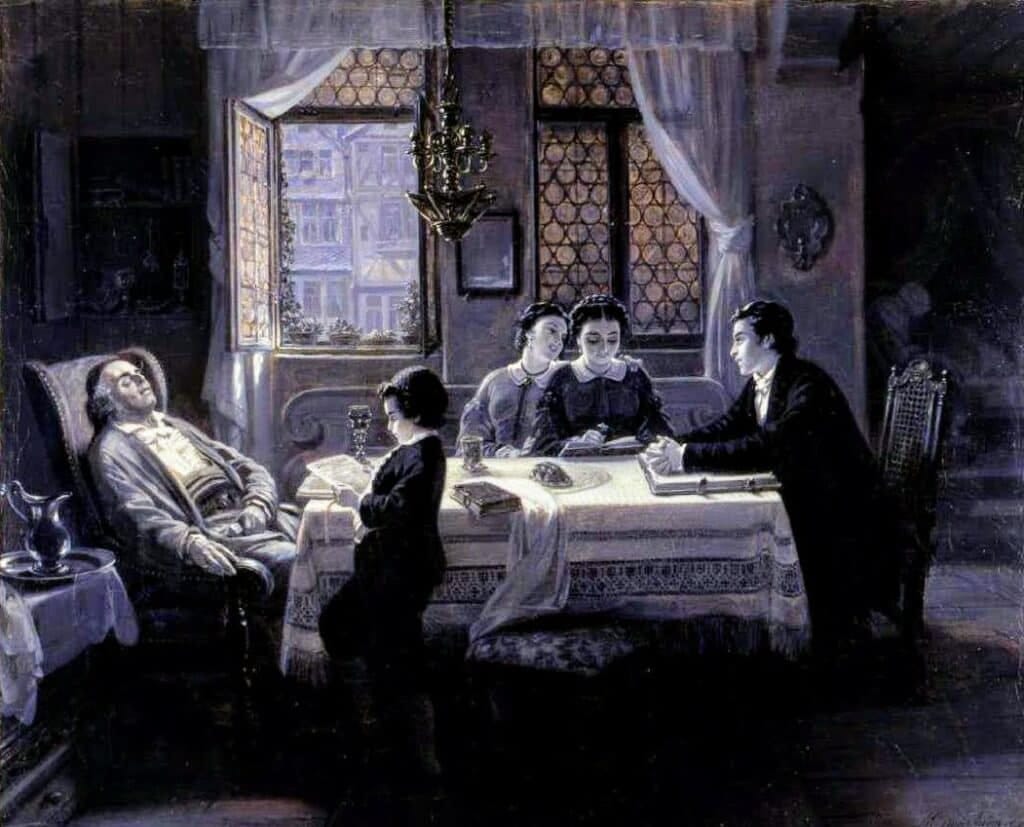 Lorsque vous examinez la toile de Moritz Daniel Oppenheim dépeignant un moment du Chabbat, concentrez-vous sur les divers groupes de personnages. Observez leurs tenues vestimentaires, qui sont des indicateurs de leur classe sociale et de leur statut. Oppenheim, ayant choisi de ne pas se convertir pour gagner la reconnaissance dans les cercles d’artistes renommés, traite fréquemment dans ses œuvres de l’intégration de la communauté juive dans la société allemande du 19e siècle. Explorez les influences historiques et culturelles qui ont pu façonner ses peintures et accordez une attention particulière à sa technique de peinture, qui enrichit l’expression et la profondeur de ses tableaux. Réfléchissez également à vos propres réactions face à ses œuvres et considérez les émotions et les pensées que ces images évoquent chez vous, ce qui vous permettra de mieux comprendre et apprécier son art.